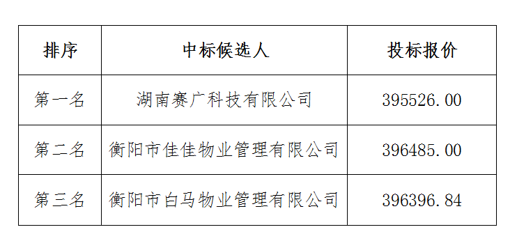 衡陽視界科技發(fā)展有限公司物業(yè)服務(wù)項目中標(biāo)候選人公示