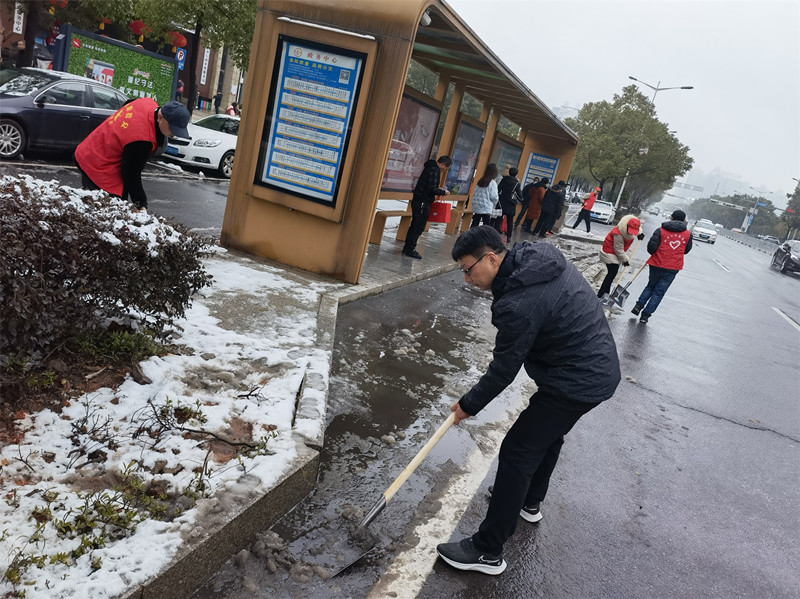 支部一聲號(hào)召,大家積極參加,穿上衡陽(yáng)群眾紅馬褂,人手一把鐵鏟,紛紛來(lái)到集團(tuán)公司大門前的蒸湘區(qū)西外環(huán)道路上。道路上堆滿了厚厚的積雪,給行人、車輛通行帶來(lái)不便。大伙兵分兩路開(kāi)始行動(dòng),雖然寒風(fēng)刺骨,但大家服務(wù)熱情很高,時(shí)刻不忘中國(guó)共產(chǎn)黨員的初心就是為人民服務(wù)。