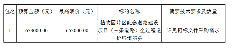 內容:負責完成植物園片區(qū)配套道路建設項目(三條道路)全過程造價咨詢服務工作,具體服務內容見招標文件采購需求。