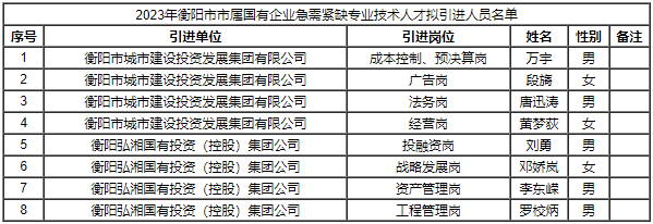 附件:2023年衡陽市市屬國(guó)有企業(yè)急需緊缺專業(yè)技術(shù)人才擬引進(jìn)人員名單