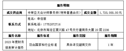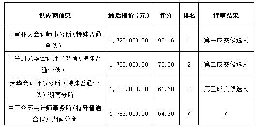 衡陽市國有資產(chǎn)投資控股集團(tuán)有限公司的衡陽市國有資產(chǎn)投資控股集團(tuán)有限公司(含下屬子公司衡陽弘湘國有投資(控股)集團(tuán)有限公司和衡陽市發(fā)展投資集團(tuán)有限公司)2023年度財(cái)務(wù)報(bào)表審計(jì)服務(wù)項(xiàng)目競(jìng)爭性磋商采購項(xiàng)目于2023年12月6日結(jié)束,現(xiàn)將成交結(jié)果公告如下:
