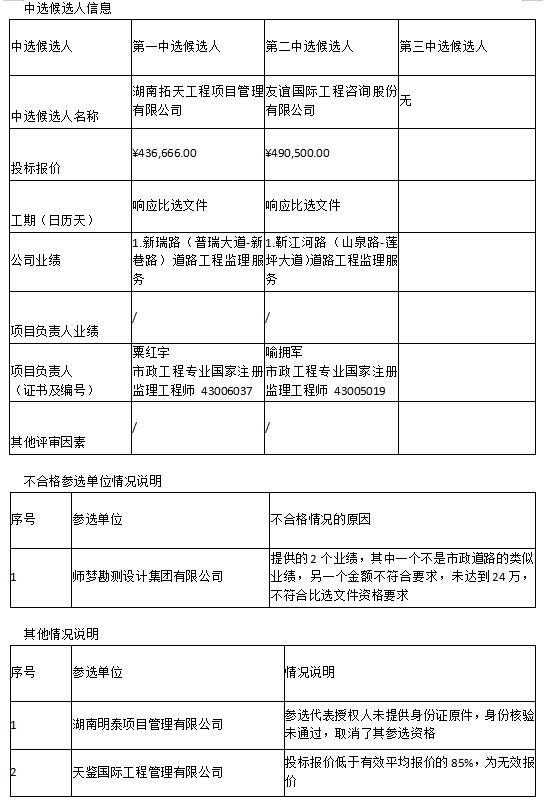 衡陽市雁城東路(東方里街-東二環(huán))及雁城東路與建湘連接線新建工程監(jiān)理服務內部比選中選候選人公示