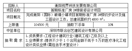 首期標(biāo)準(zhǔn)廠(chǎng)房2#樓裝修設(shè)計(jì)項(xiàng)目抽取結(jié)果公示