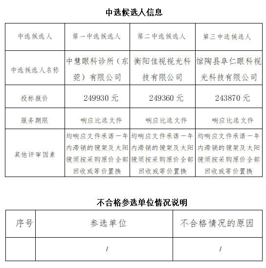 衡陽(國際)眼鏡小鎮(zhèn)視光檢測中心鏡架合同太陽鏡采購公開比選中選候選人公示