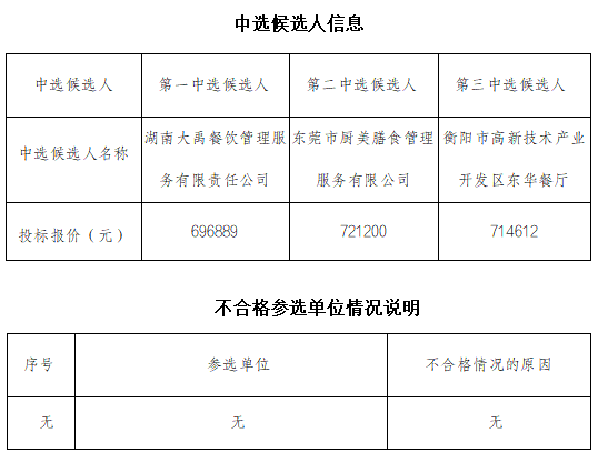 衡陽國投集團員工食堂勞務(wù)承包服務(wù)單位公開比選中選候選人公示